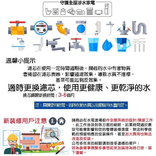 商品規格 商品名稱 : 怡康 標準20吋大胖碳布PP 類別 : 濾芯 淨水方式 : 濾芯 型號 : - 適用主機類型 : 公用20吋大胖濾殼 數量 : 1入 規格 : 尺寸:11x51cm 產地 : 台灣 保固 : 無(新品瑕疵) 貨源 : 公司貨 體驗說明 使用方法說明 無 注意事項 ◎本商品僅送至一樓,不含安裝服務,也不含舊機回收處理。 ◎本商品為消耗品,無法提供保固。 ◎本商品為淨水濾心,請確認淨水機是否適用。 ◎濾心使用週期依正常水質地區狀況決定,但因各區域水質不同,故濾心更換頻率不同,所消耗之濾心也隨之不同,特以提醒消費者,以免造成認知上的差異! ◎請各位消費者,於下單前再次仔細確認商品是否符合所需(如對商品有任何疑問,歡迎留言、Mail或來電詢問),本公司將儘速竭誠回覆。 ◎因地點偏遠或地型特殊實在無法送達者,本公司保有出貨與否的權利。 ◎鑑賞期非適用期或使用期,商品經安裝或使用後,僅供保固服務。零件包拆封視同已安裝。 ◎本商品文案以實際商品為主。原廠保留變更之權利,若有變更,恕不另行通知! ◎產品為消耗性產品,鑑賞期內無法過水試用,於鑑賞期內如因新品瑕疵可申請換貨處理,如超過此鑑賞期,恕無法辦理退/換貨! ◎退貨商品必須是全新狀態且包裝完整(保持產品、附件、包裝、廠商紙箱及所有附隨文件或資料之完整性),商品及相關配件、贈品不得缺件、刮傷。退換貨時,請另外使用其他紙箱或袋子包覆於商品原廠包裝以及贈品之外,切勿直接於原廠包裝外盒上黏貼紙張或書寫文字,若原廠包裝損毀將影響退貨權限,敬請見諒。