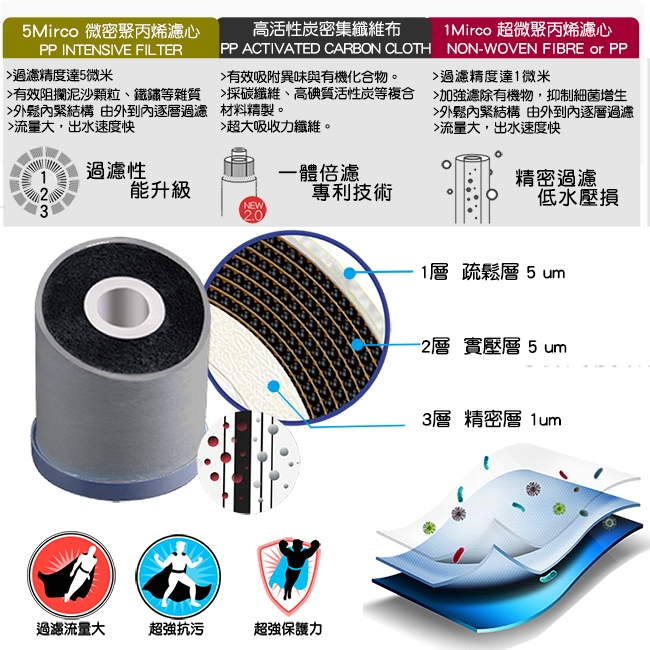 一支濾心 三種功效 結構外鬆內緊 由外到內逐層過濾 有效吸附異味與有機化合物 商品名稱 怡康標準20吋大胖碳布PP類別 濾芯淨水方式 濾芯型號 適用主機類型 公用20吋大胖 售價:1780